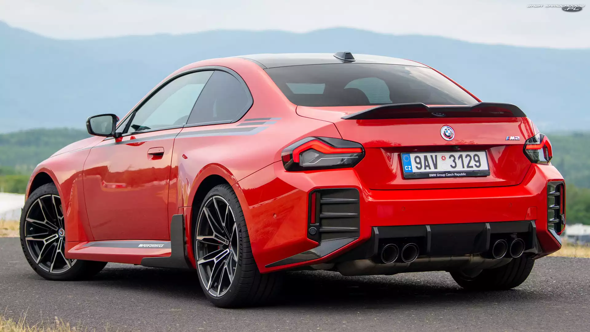 Samochód: Czerwone, BMW M2 Coupe, Bok, Tył