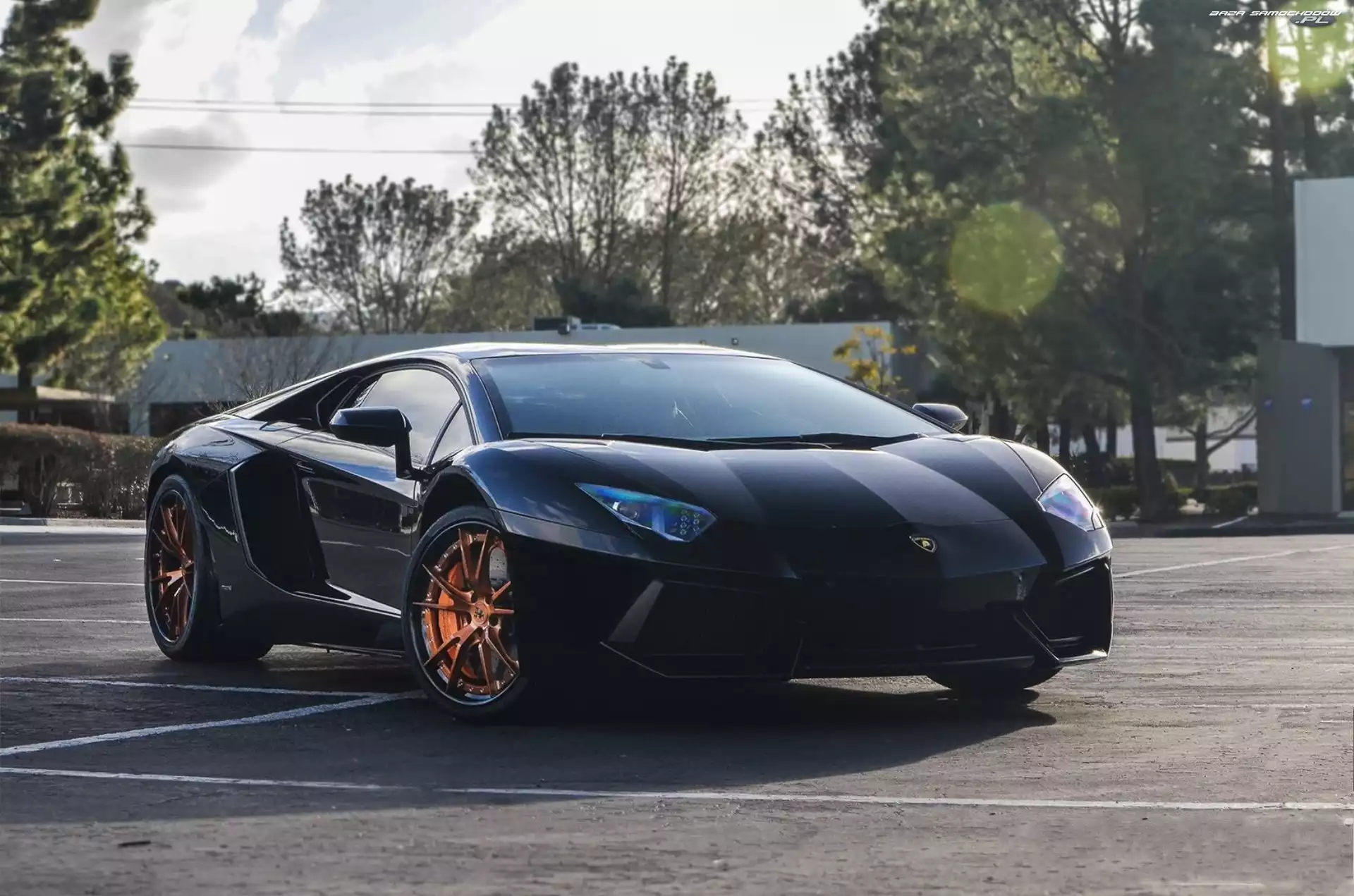 Drzewa, Lamborghini, Aventador- Zdjęcia samochodów