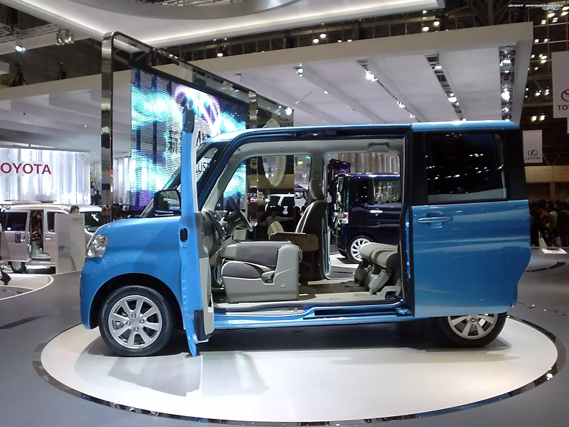 Reflektory, Błękitne, Daihatsu Tanto Daihatsu Tanto, Custom Koła, Prezentacja, Daihatsu Tanto Bagażowa, Daihatsu Tanto, Przestrzeń Lampa, Białe, Daihatsu Tanto Przestrzeń, Daihatsu Tanto, Reklamówka Dealer, Daihatsu Tanto Drzwi, Daihatsu Tanto, Rozsuwane Car, Daihatsu Tanto, Japan Zderzak, Tył, Daihatsu Tanto Pasażerska, Daihatsu Tanto, Przestrzeń